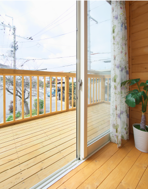 フローリングとウッドデッキのスムーズな移り変わりがなんとも美しく感じます。