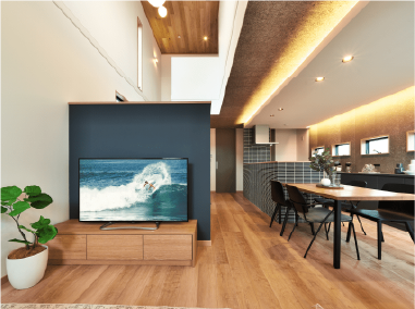 LDKと空間を縦にセパレートすることにより、程よい独立感を実現しました。家族と同じ空間に居ながら、集中できるスペースはリモートワークに最適です。